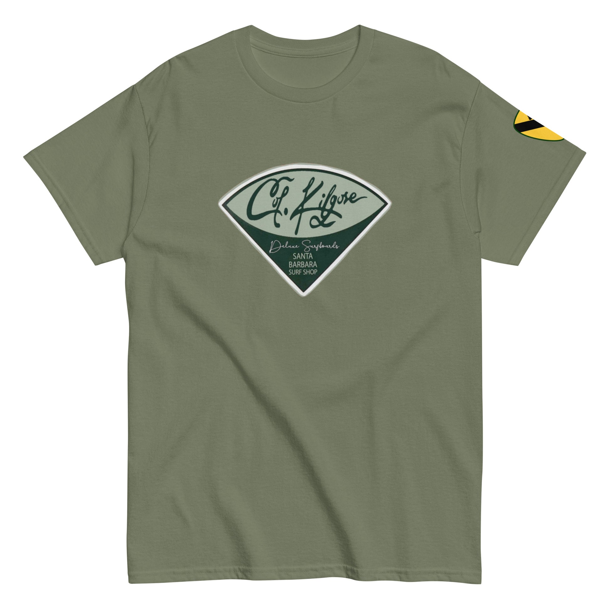 Charlie Don't Surf! This is our take on the shirt made famous by Robert Duvall in the war movie epic Apocalypse Now. Instead of it saying Yater (an possibly getting sued to death by them) it says Col. Kilgore's Santa Barbara Surf Shop. The 1st AIR CAV logo is on the sleeve.