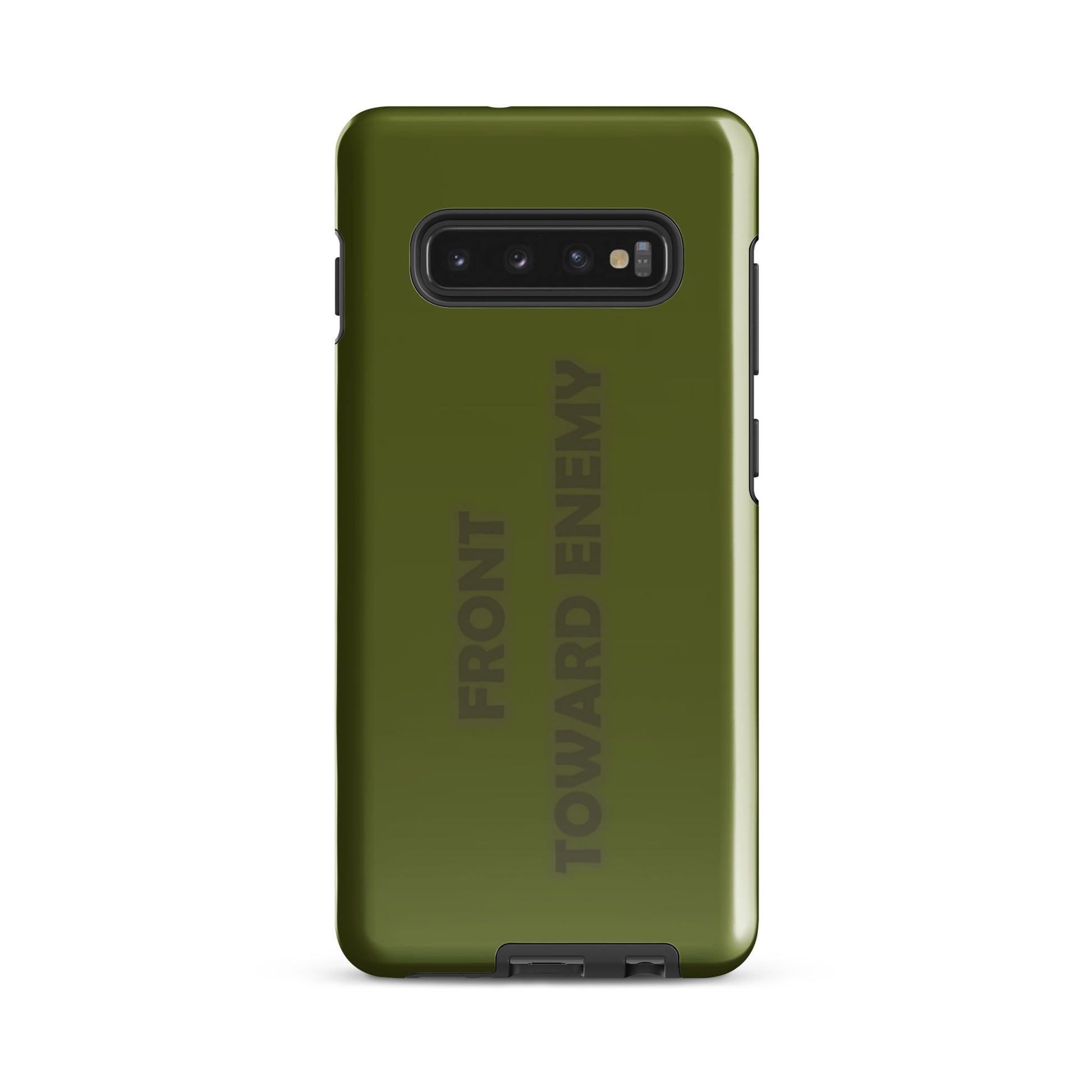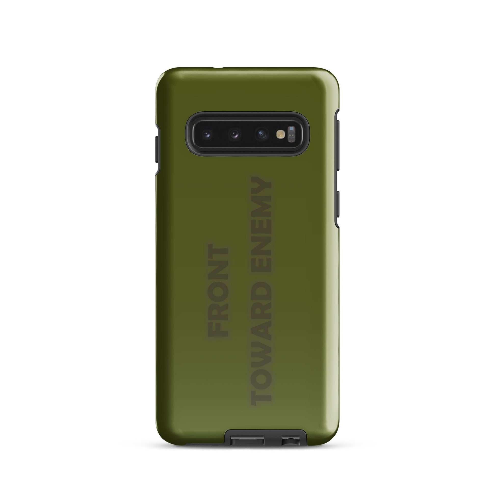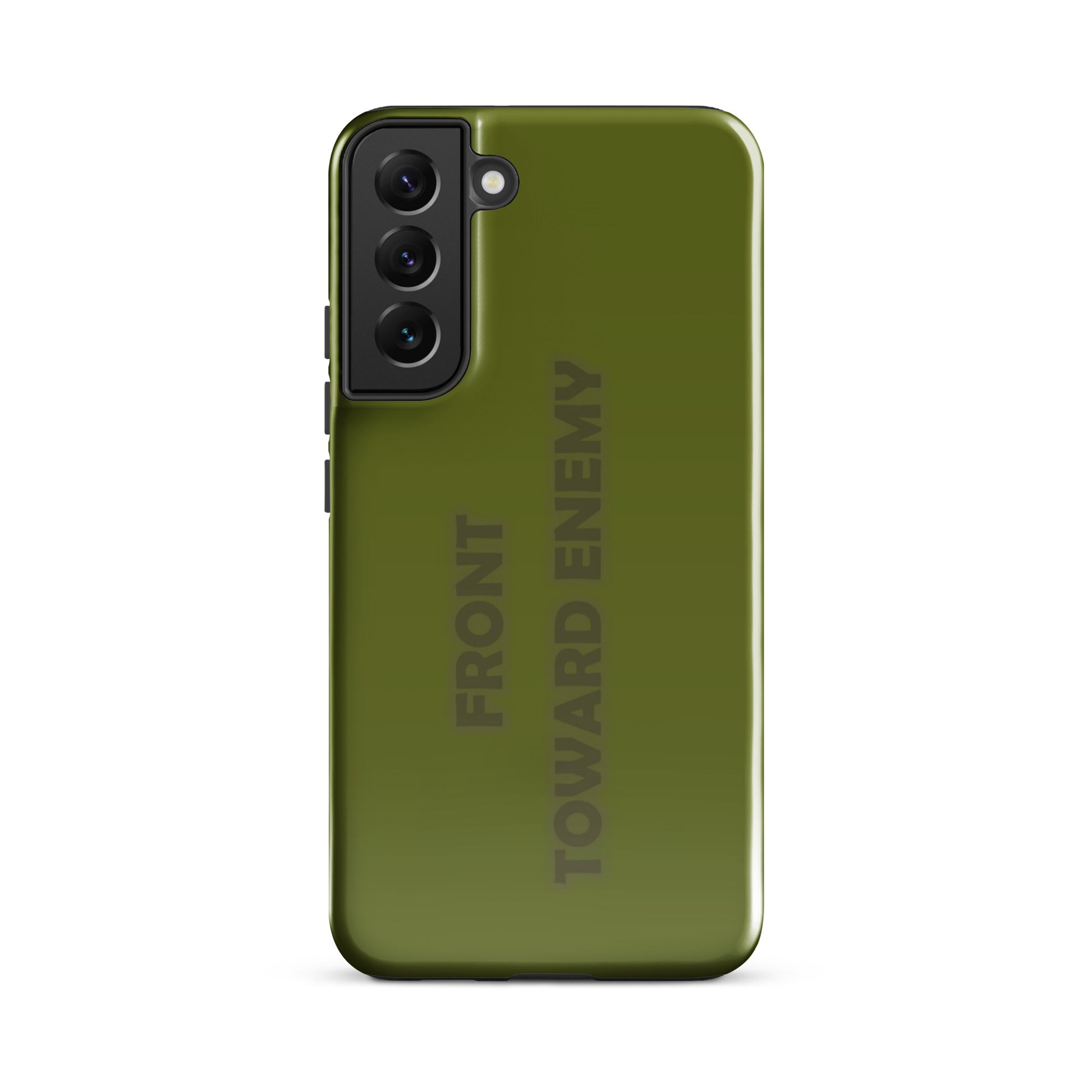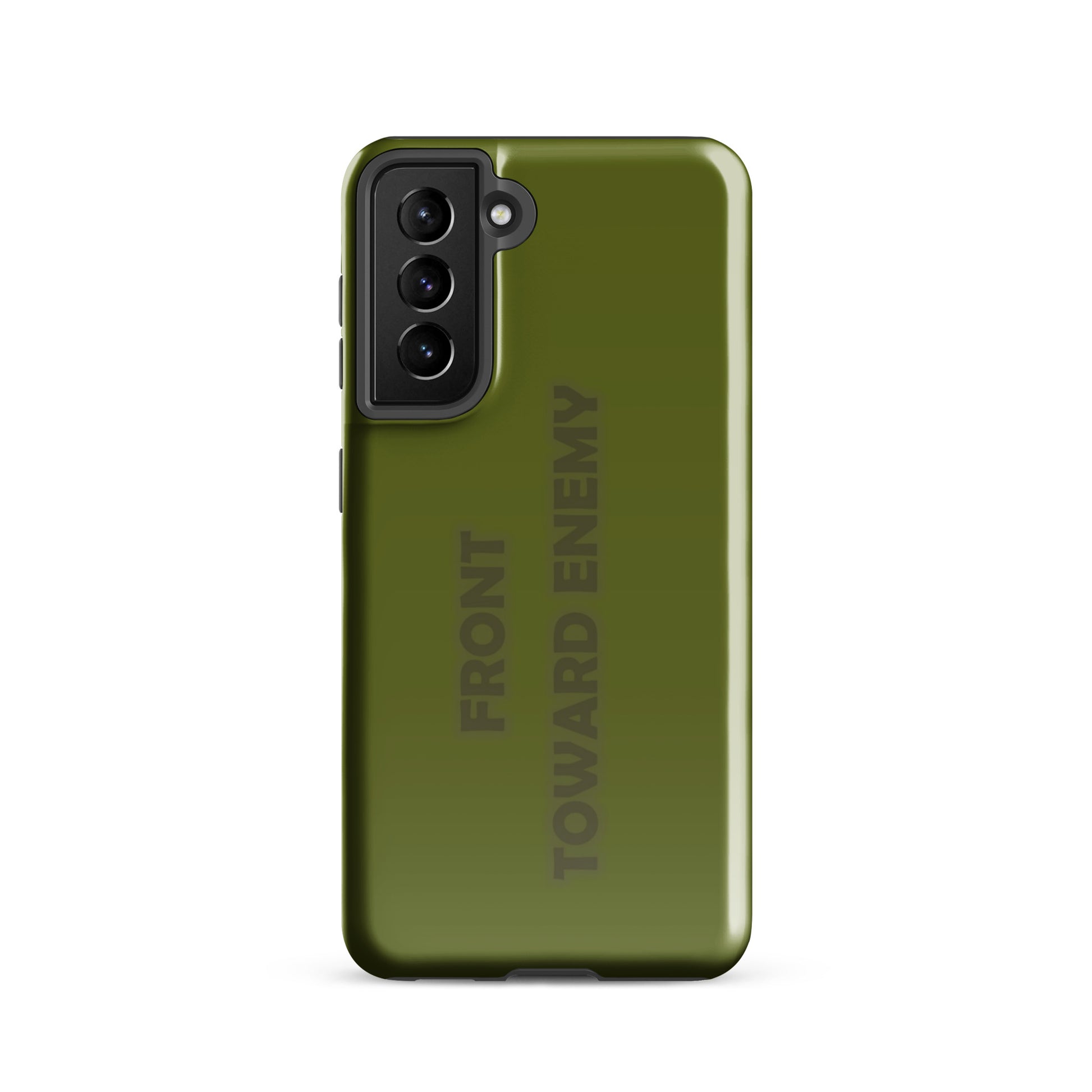 Check out this explosively fun phone case designed to mimic the iconic look of a claymore mine! With the bold text "FRONT TOWARD ENEMY" prominently displayed, it's guaranteed to turn heads and spark conversations. Perfect for military buffs or anyone who loves a good joke, this phone case is sure to protect your phone with a bang! Not only will it shield your device from the bumps and scratches of daily life, but it'll also give your friends a blast every time they see it. Just remember, it's all fun and games until someone asks you to disarm your phone!