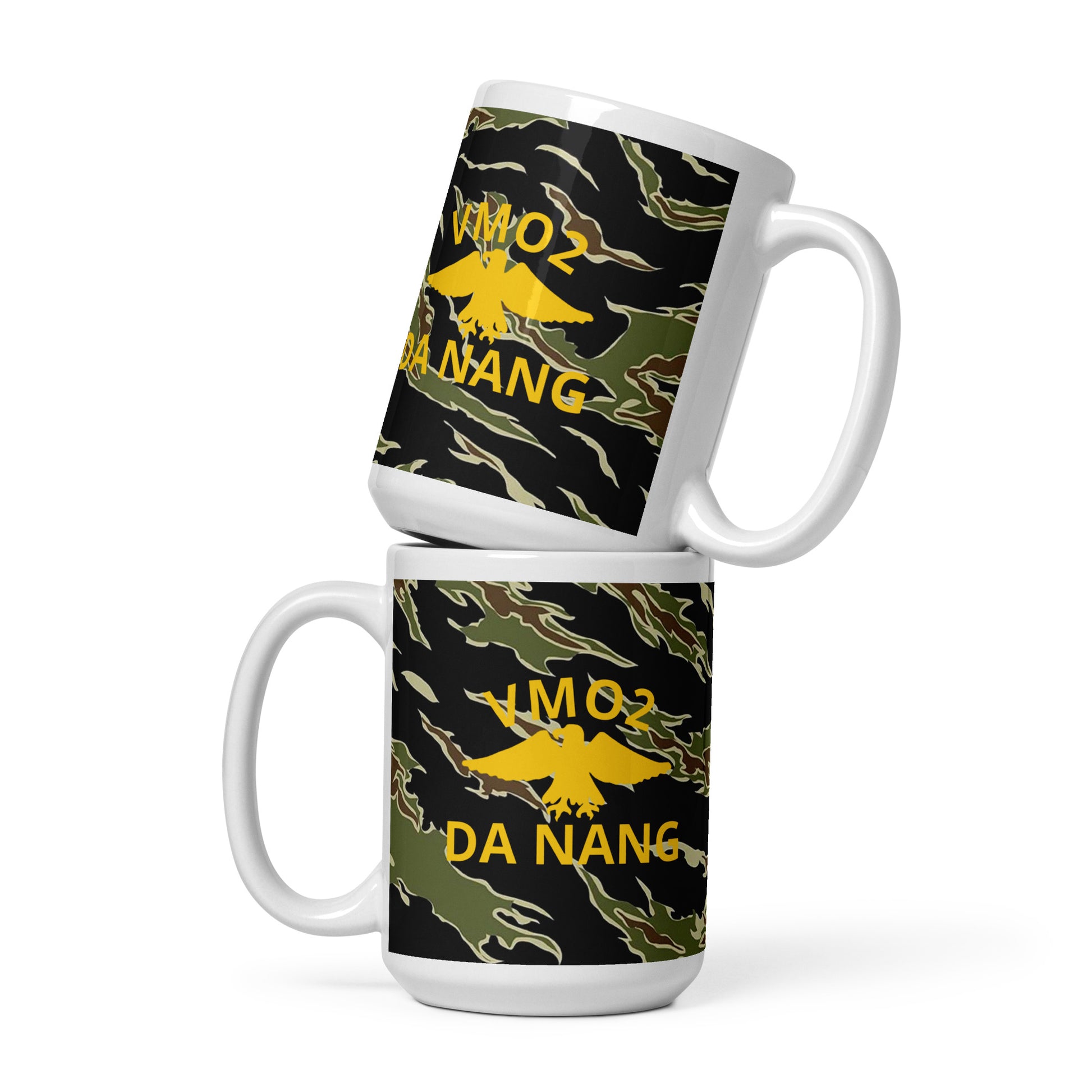 Looking for a fun addition to your caffeinated mornings? Fuel up with your coffee Magnum PI style. Tom Selleck's character often wore a VMO-2 hat (which never made any sense to me) We have here a very nice Tigerstripe mug with the VMO-2 logo on it. This ceramic mug is sure to put a smile on your face! It’s dishwasher-safe and perfect for everyday use.